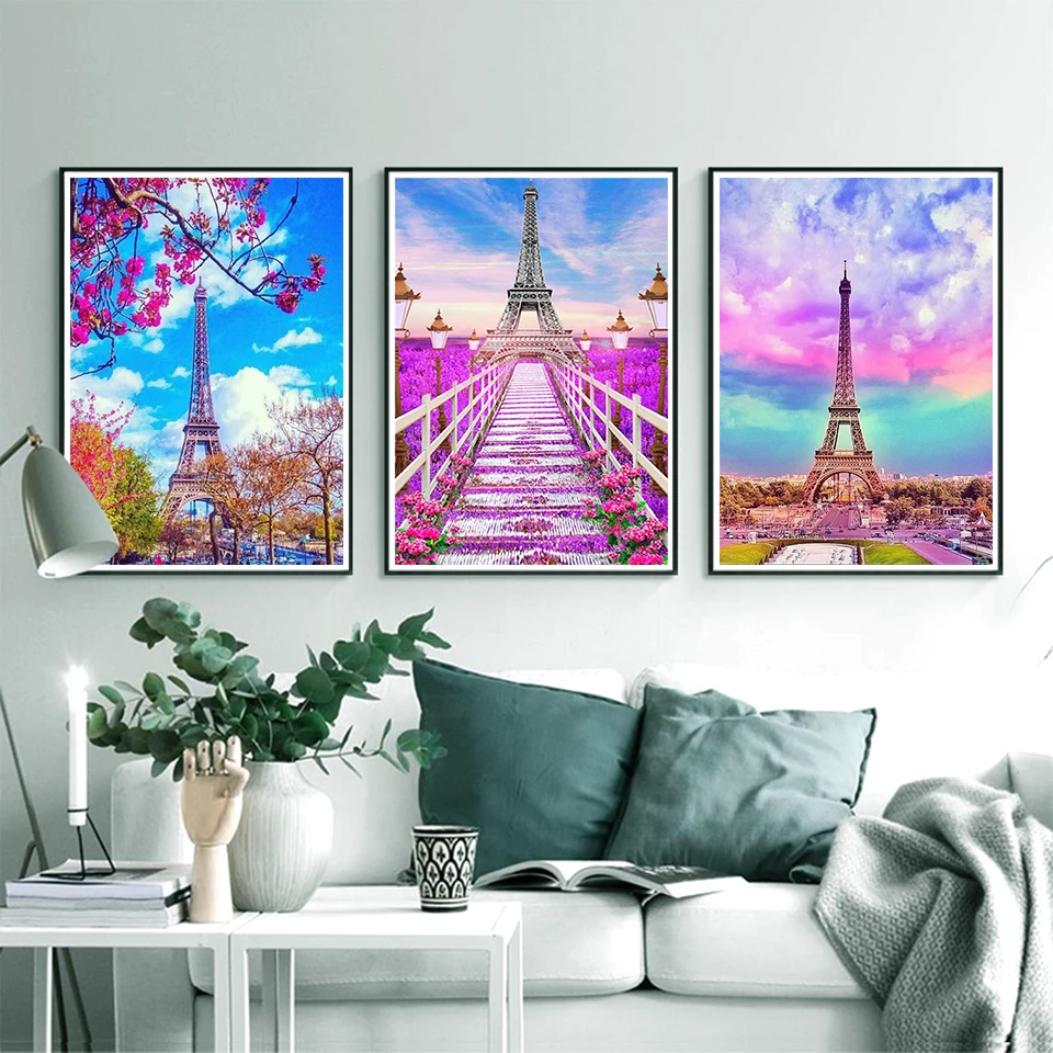 Набор для алмазной живописи 5D сделай сам, картина с рисунком пейзажа, Эйфелевой башни, Парижа, мозаика для творчества, подарок для украшения дома