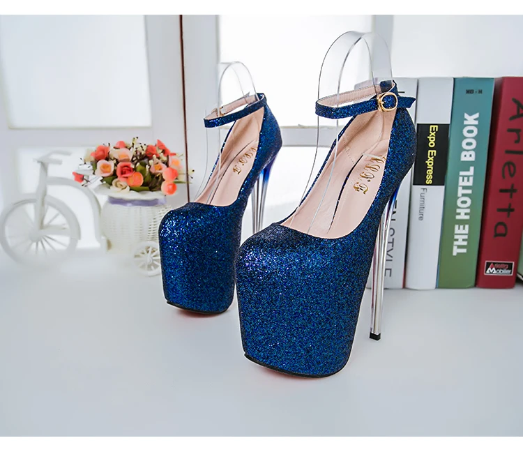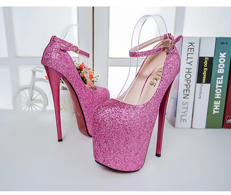 Туфли на тонком высоком каблуке 19 см с блестками 34-48 49 50