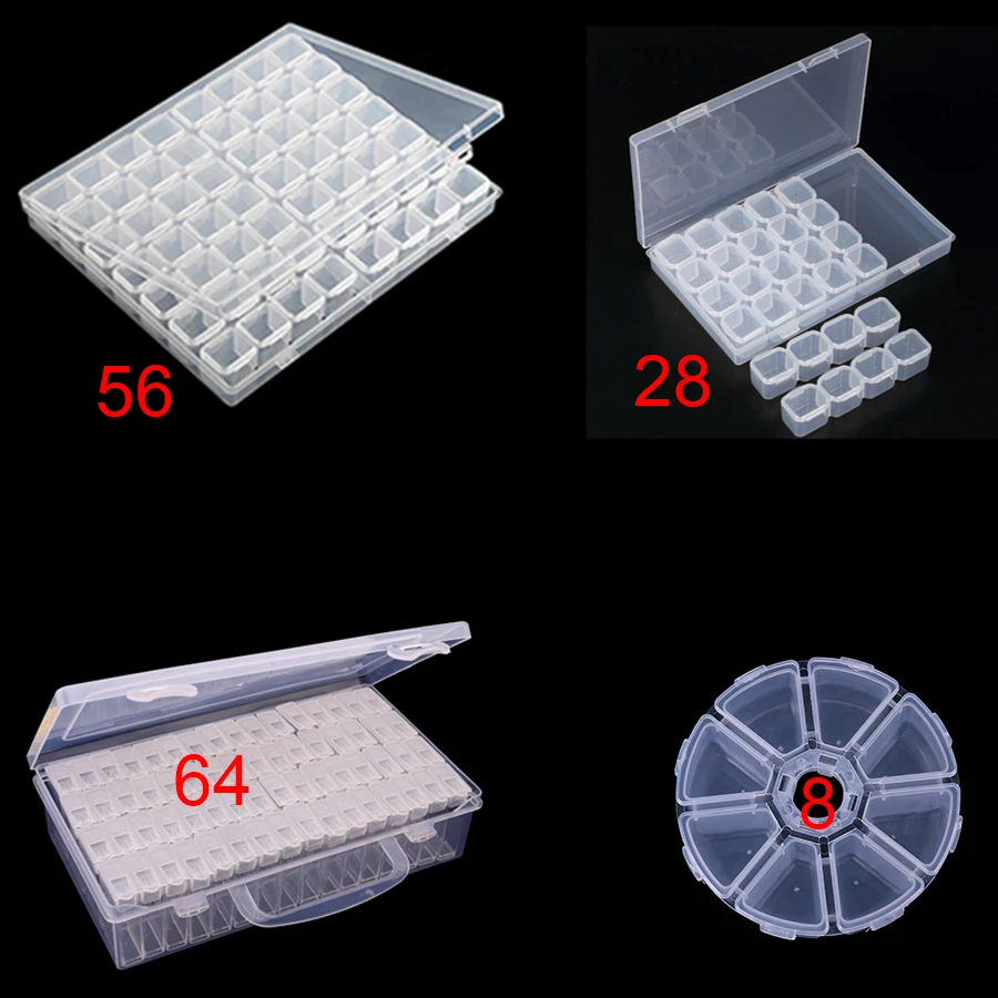 Ящик для хранения, 64, 56, 28, 8 слотов, для инструмента алмазной живописи, камня для ногтей, пластиковый чехол для хранения, аксессуары для алмазной вышивки, распродажа