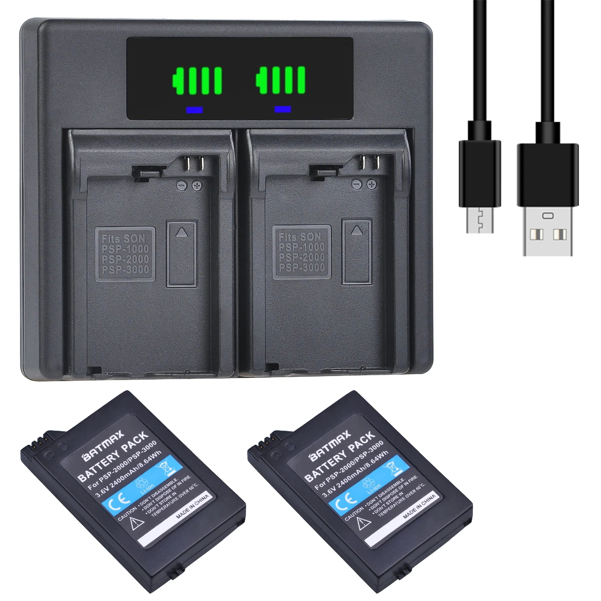 2 шт., аккумулятор 2400 мАч, PSP 2000, светодиодная подсветка, быстрое зарядное устройство для геймпадов Sony PSP 2000, PSP 3000, PSP 2000, PSP S110
