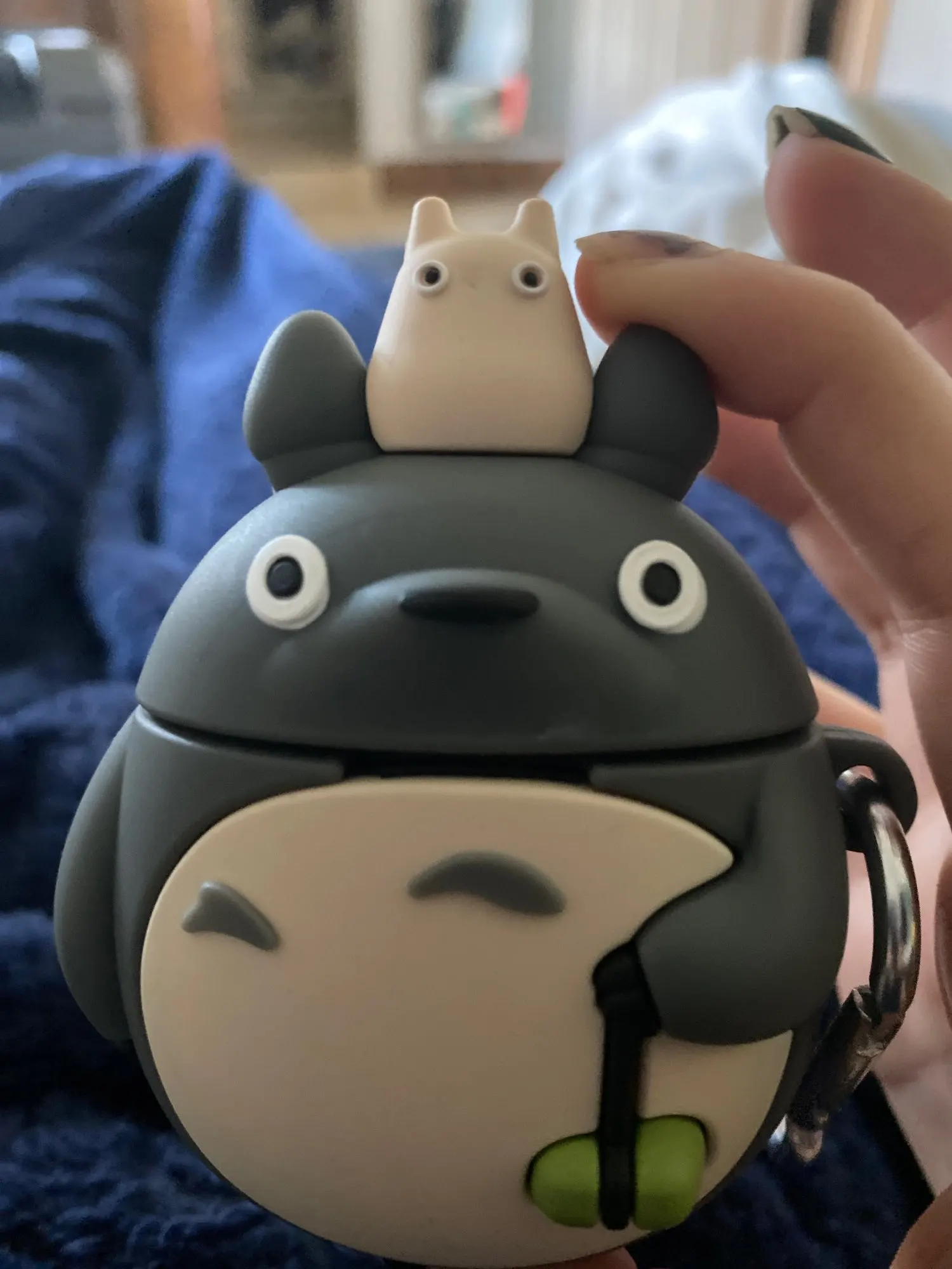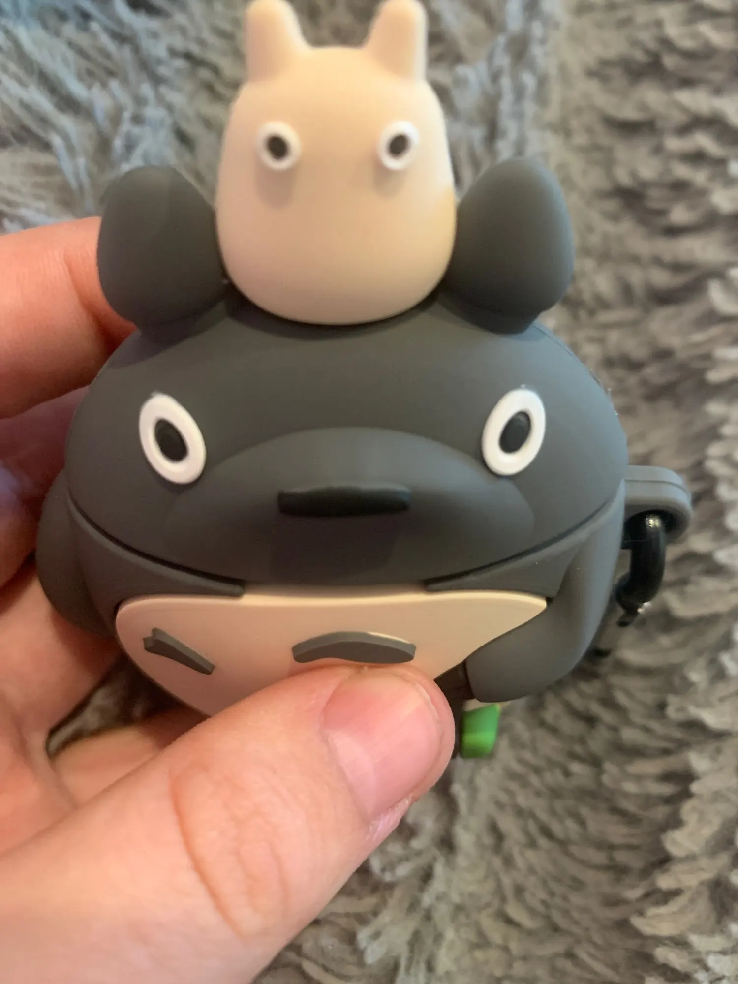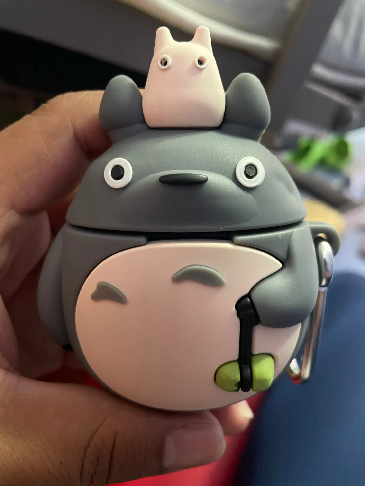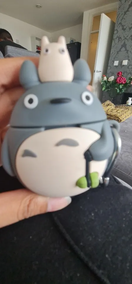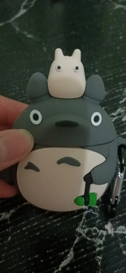 Очень мило, немного больше, чем я ожидала, но все равно очень мило. Единственный вопрос, который у меня есть с ним, заключается в том, что когда вы пытайтесь открыть корпус AirPod, голова totoros иногда отскакивает; Однако, Я думаю, что этот вопрос может быть легко решен с небольшим количеством горячего клея на чехле (поскольку он пластиковый на пластике, я уверен, что он не повредит чехол)