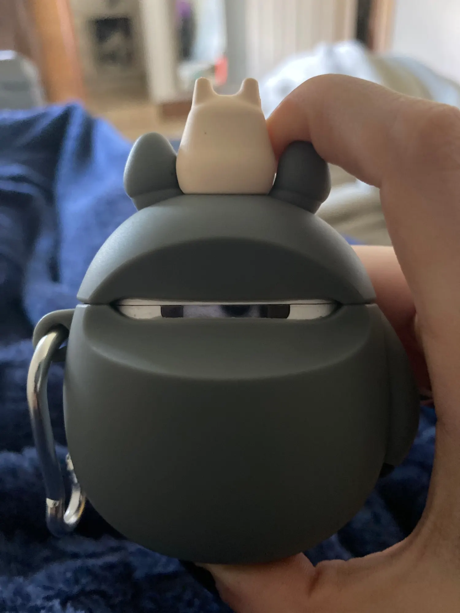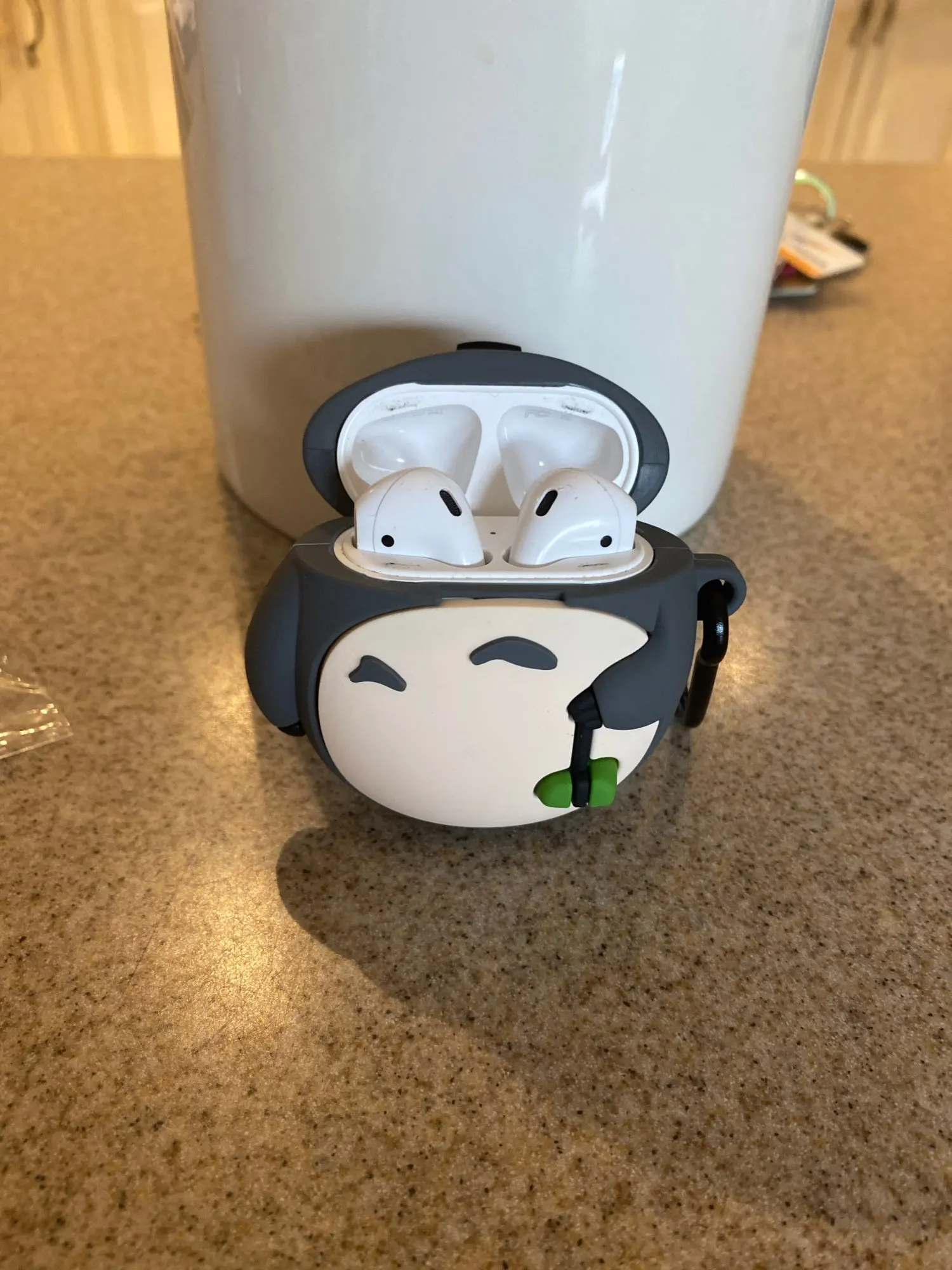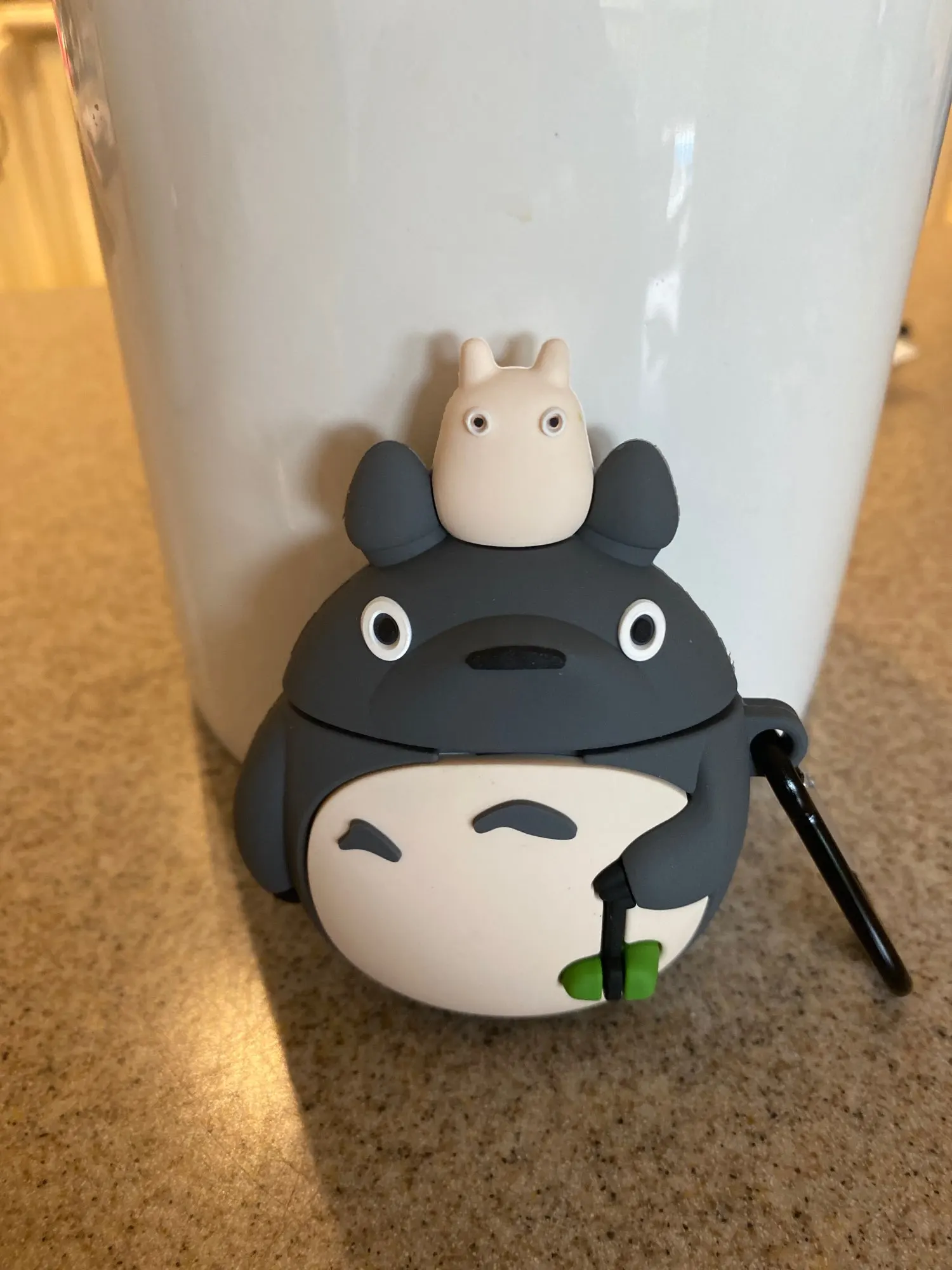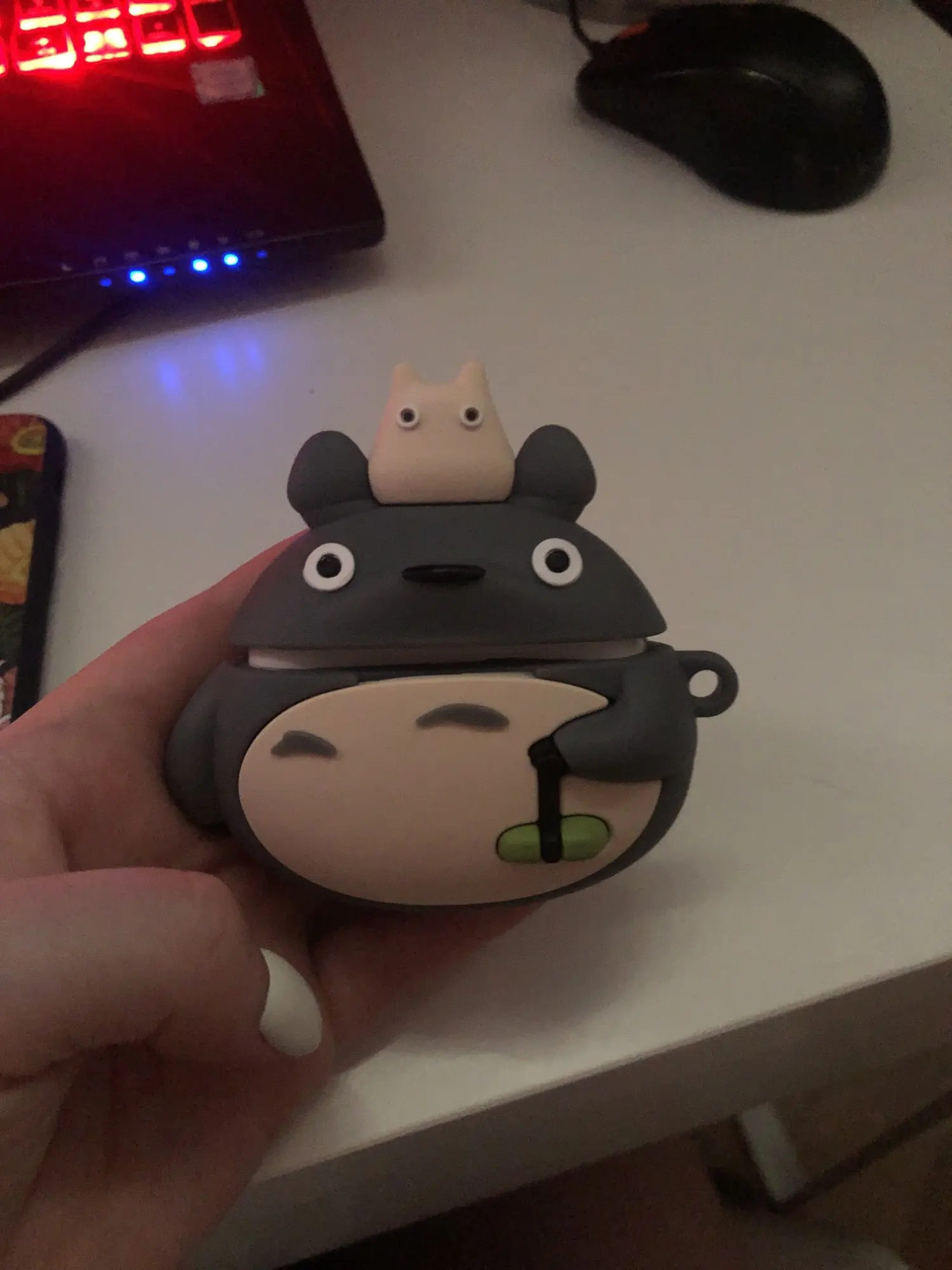 Очень мило, немного больше, чем я ожидала, но все равно очень мило. Единственный вопрос, который у меня есть с ним, заключается в том, что когда вы пытайтесь открыть корпус AirPod, голова totoros иногда отскакивает; Однако, Я думаю, что этот вопрос может быть легко решен с небольшим количеством горячего клея на чехле (поскольку он пластиковый на пластике, я уверен, что он не повредит чехол)