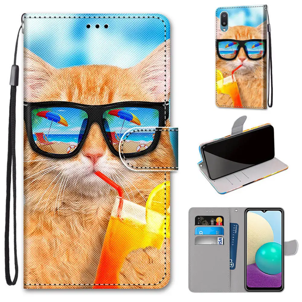Кожаный чехол-книжка для телефона Samsung Galaxy M02, M02S, M01, M11, M31, M12, с изображением милого кота и цветов, чехол-книжка с держателем для карт и подставкой