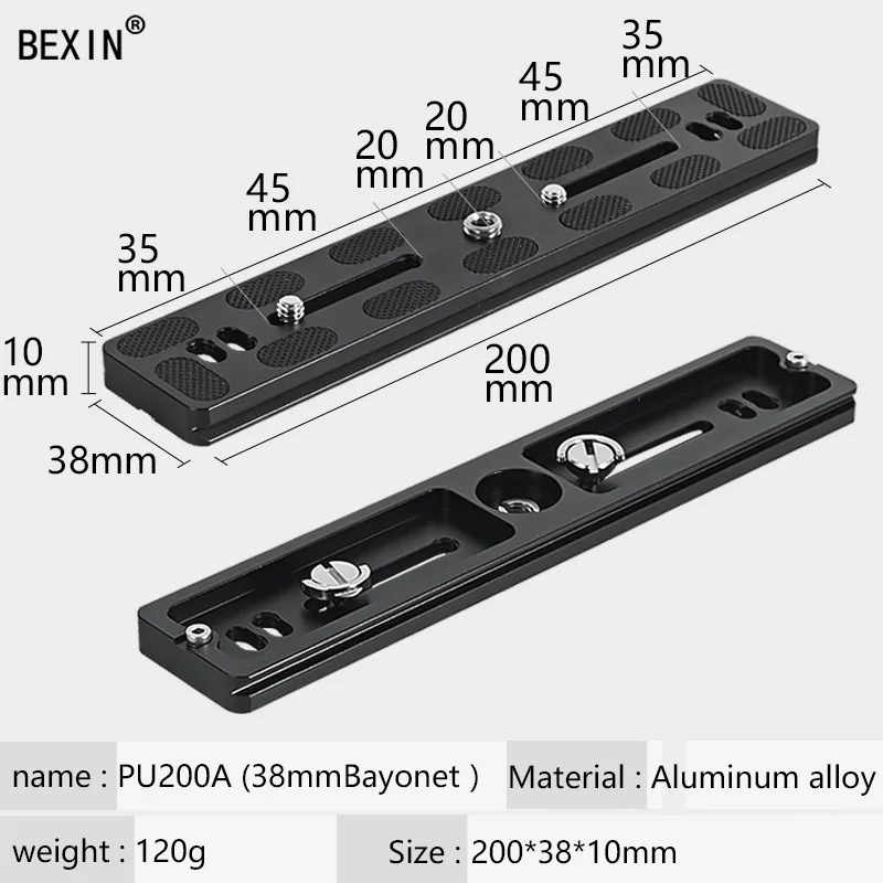 Спецификация:Модель: PU120/150/200/300AМатериал: алюминийПластина StandardArca swissВес: 75/110/135/222gРазмер: 120/150/200/300*38*10 ммШирина пластины: 38 ммТехнология: Анодное окислениеВинт камеры: Кольцевой винт UNC1/4Примечание:1. Возможны отклонения в 1-3 мм из-за ручного измерения.2. Из-за различных дисплеев и другого светильник, изображение может не показать фактический цвет товара. Спасибо за понимание.