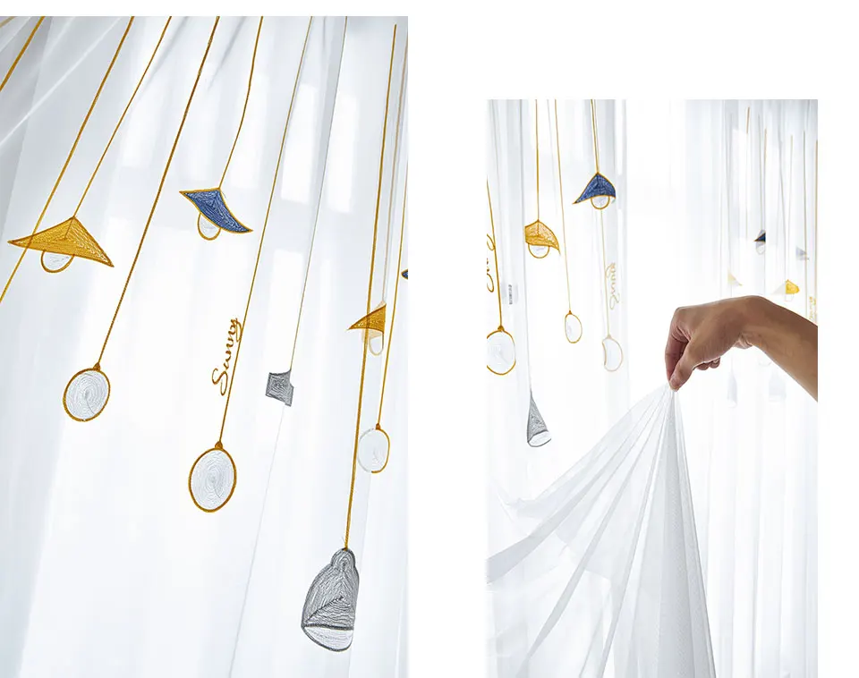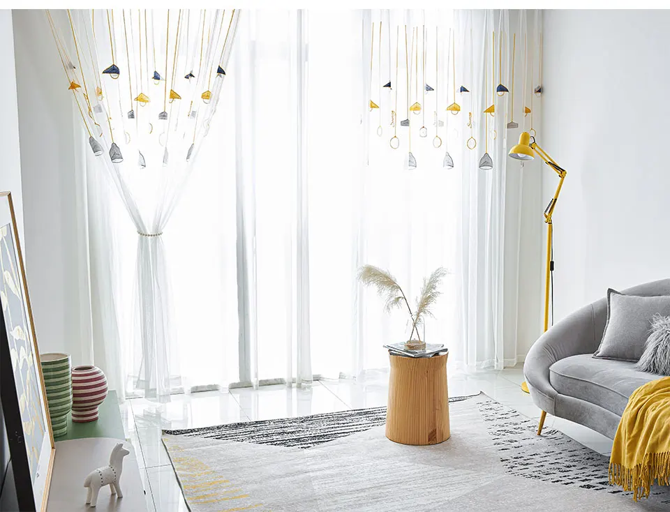 Современная Тюлевая занавеска на окна с вышивкой для гостиной, желтая люстра, прозрачная вуаль, занавески для детской, бардак, жалюзи, дверь