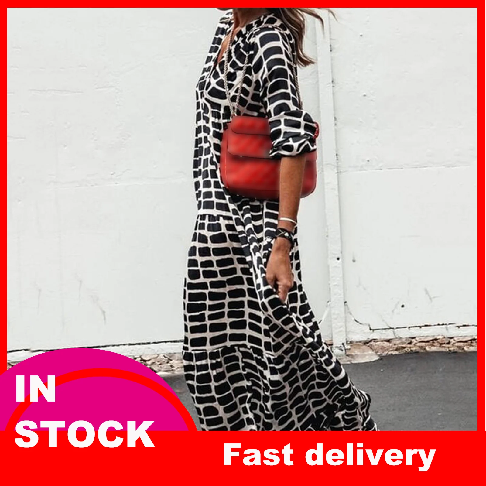 Женское Платье с леопардовым принтом, свободное Летнее Платье до пола с V-образным вырезом и длинными рукавами, 4 #, 2021