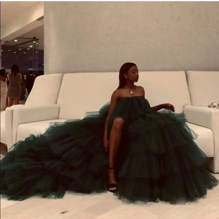 Фон для фотографирования в изумрудно-зеленых Пышное длинное платье на выпускной многоярусные платья оборками Вечеринка платье пышное огромный поезд торжественное платье шикарное изготовленное на заказ