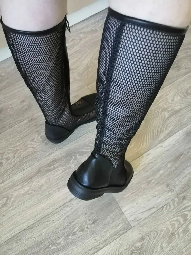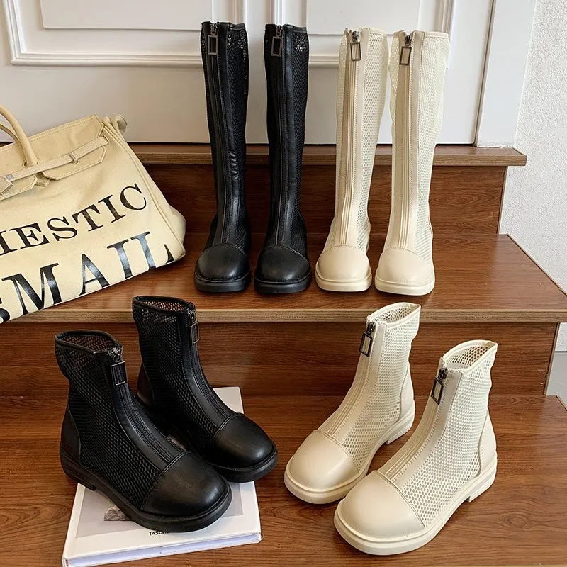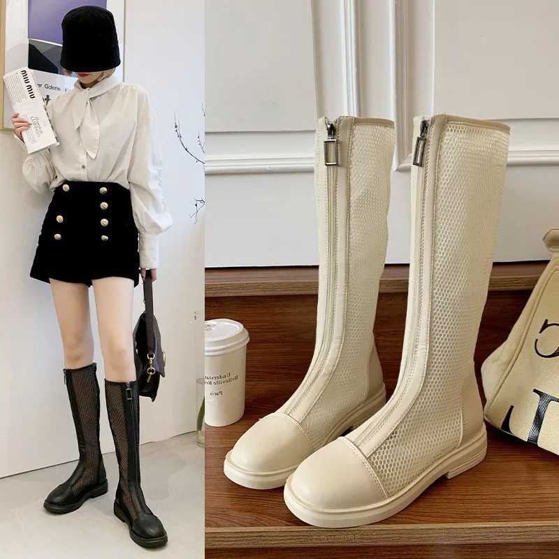 Новые модные женские сапоги до колена пикантные кружевные сапоги на квадратном каблуке с молнией Летние красивые сапоги дышащая женская обувь