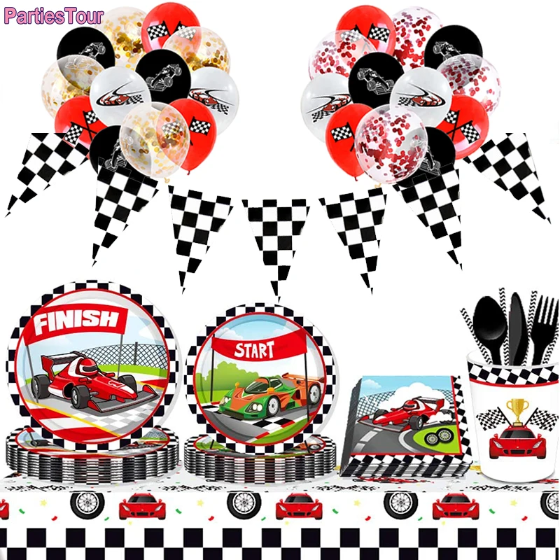 Гоночный автомобиль, декор для дня рождения, одноразовая посуда, чашка, тарелка, гонка, воздушный шар, баннер на день рождения, товары для детского праздника