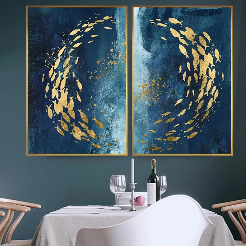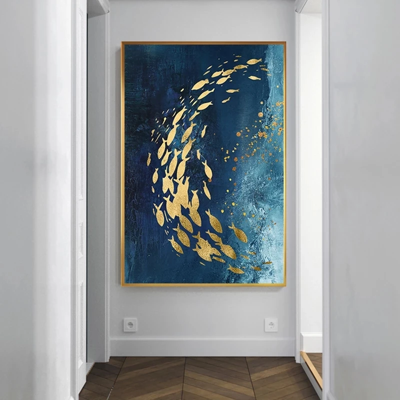Золотая Рыба в океане, холст, живопись, Современное абстрактное настенное искусство, гостиная, домашний декор, Фреска (без рамки)