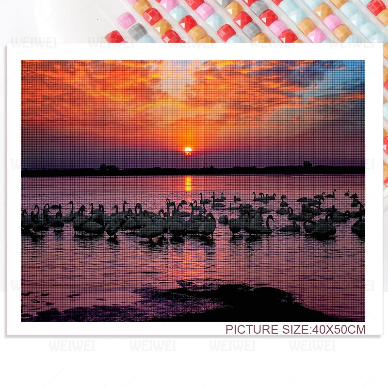 Алмазная мозаика сделай сам, картина с изображением животных, лебед...