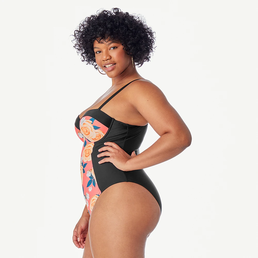 Наш слитный купальник с формованными чашками Blossom Floral размера плюс позволит вам чувствовать себя прохладной и уверенной в себе. Этот цветочный и черный купальник с регулируемыми бретелями, формованными чашками на косточках, которые обеспечивают полную поддержку и охват.