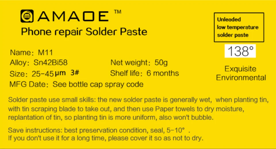AMAOE/Паяльная паста/мобильный телефон ремонт/этилированный/бессвинцовый/серебристый/высокая температура/средняя температура/низкая температура/Оловянная паста