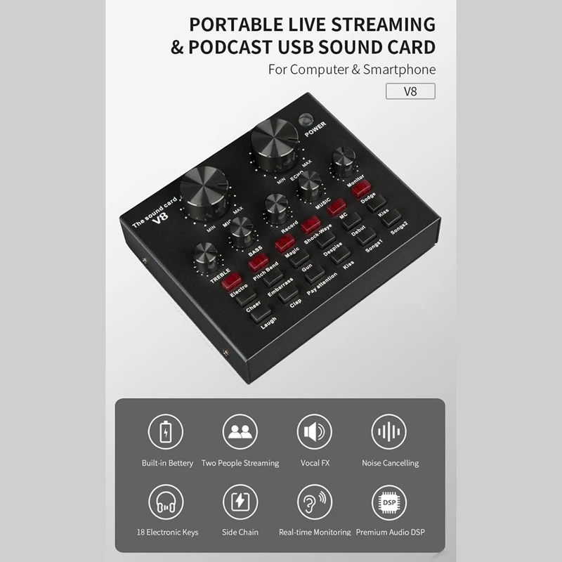 Микрофон MOOL BM800 с профессиональной звуковой картой V8, Студийный конденсаторный микрофон для компьютера