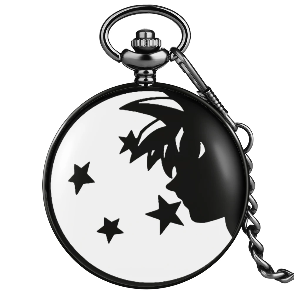 Карманные часы с аниме-принтом, ретро, черный кулон, кварцевый меха...