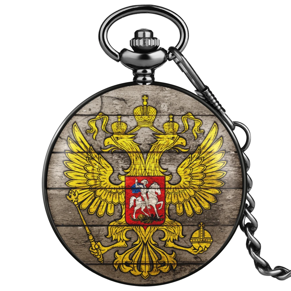 Карманные часы с двуглавым орлом и толстой цепочкой, чехол из сплав...