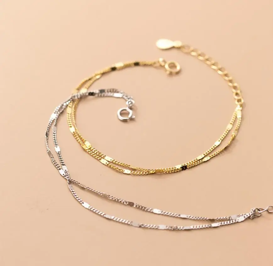 925 стерлингового серебра двойные слои браслет для женщин элегантны...