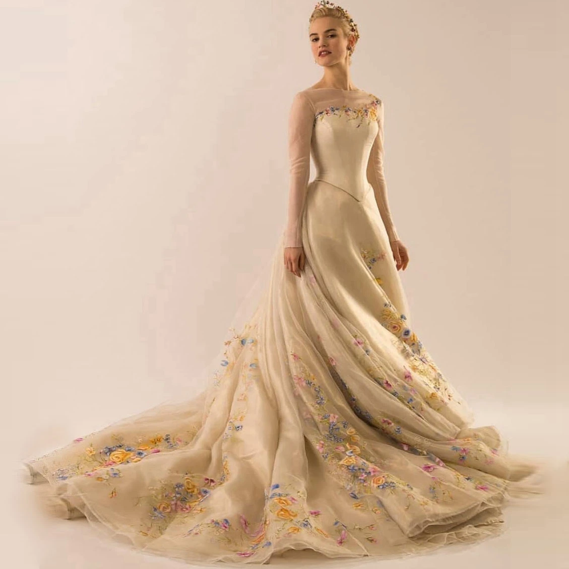 Женское вечернее платье со шлейфом, прозрачное платье принцессы с вырезом лодочкой, длинным рукавом и цветочным принтом, платье для выпускного вечера