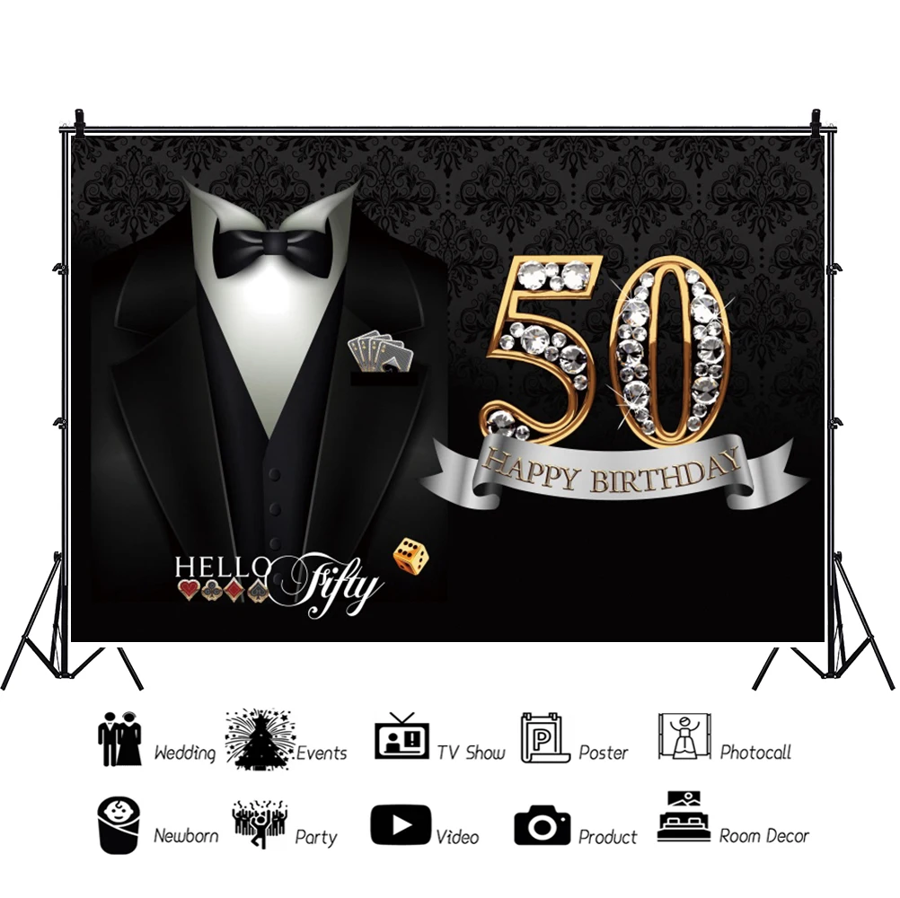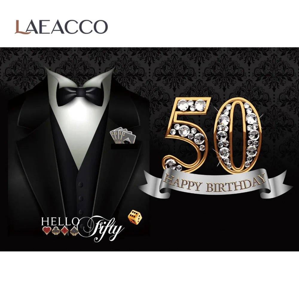 Laeacco счастливый красивый Для Мужчин's 50th День рождения костюм алмаз карты размер плаката фото фон, фото-Декорации для фотосъемки