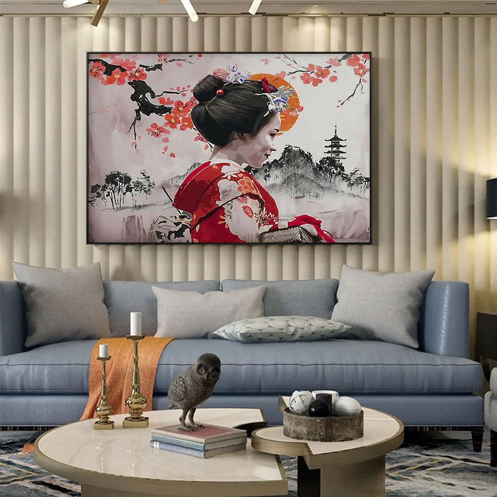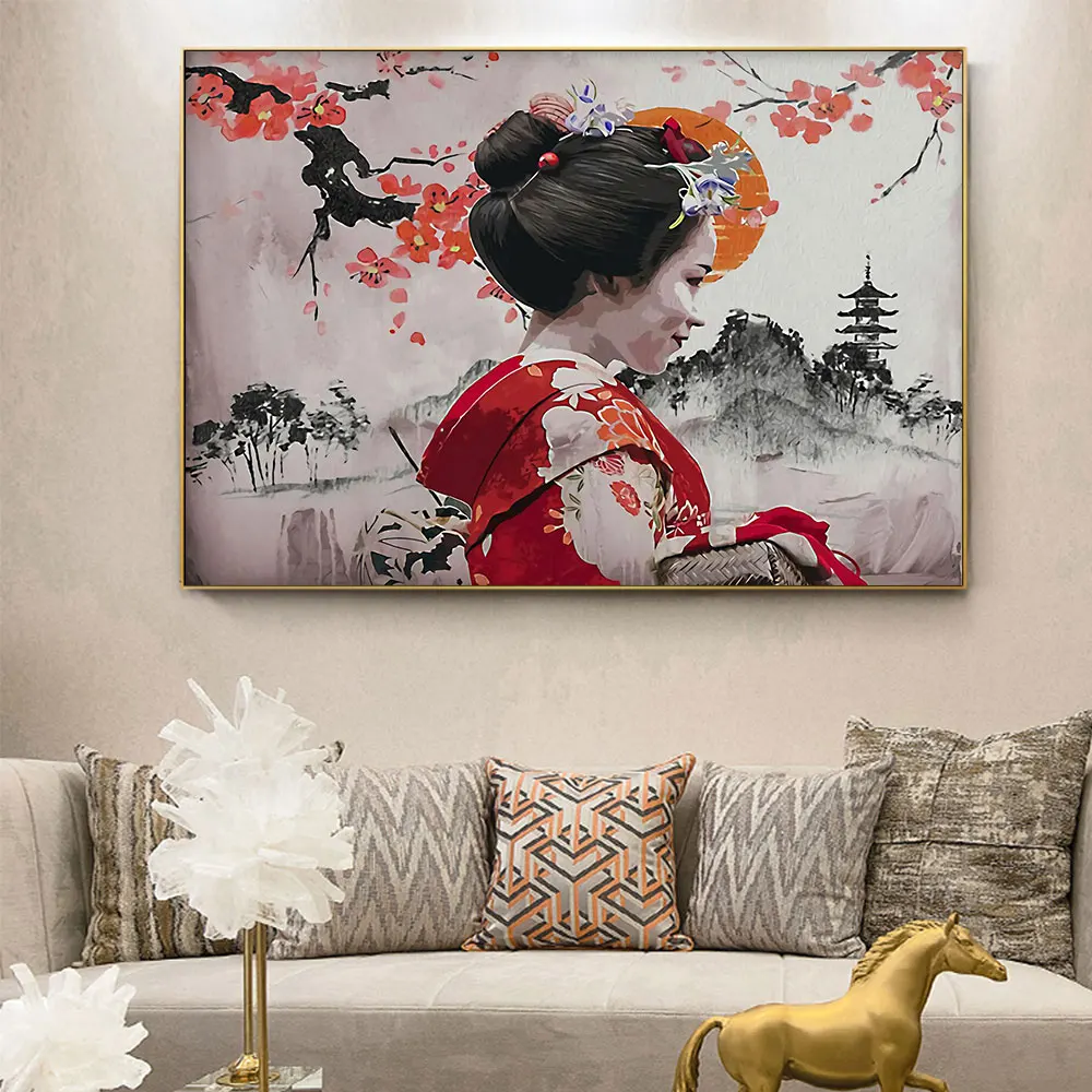 Японских гейш холст со скандинавскими мотивами плакат современные прикроватные фон принты для домашнего декора живопись на холсте искусство стены фотографии живой розы