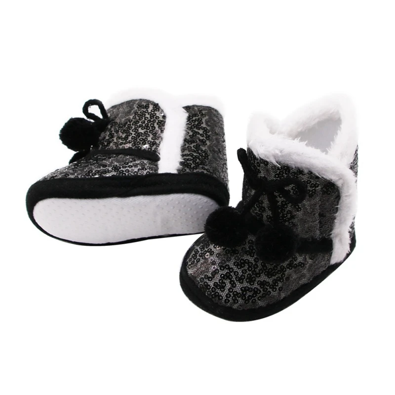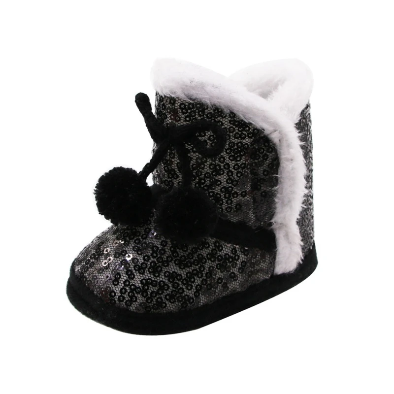 Зимние ботинки для мальчиков и девочек, с блестками, с плюшевым помпоном, нескользящая обувь для малышей, хлопковая обувь для новорожденных, детская обувь, 2021