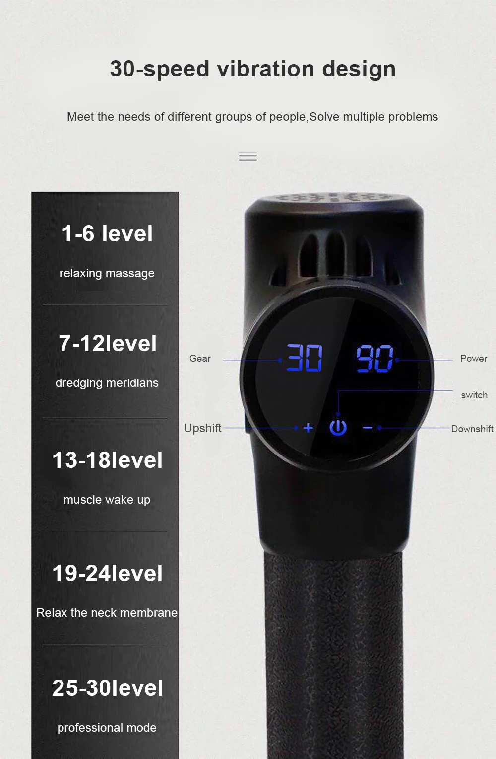 Массажный пистолет, электрический прибор для перкуссионный массажер глубоких тканей, для похудения, шеи, релаксации мышц, 30 скоростей
