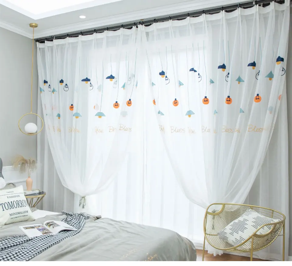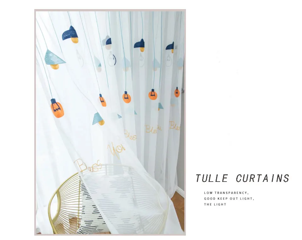 Тюлевые занавески на окна в скандинавском стиле для детской спальни, люстры, прозрачные Занавески с вышивкой из вуали для гостиной, занавески из пряжи