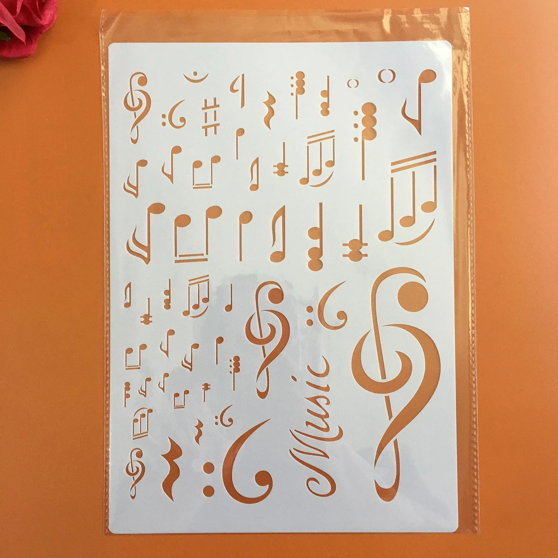 A4 музыкальная нота DIY Трафареты настенная живопись раскраска для скрапбукинга рельефная декоративная альбомная бумага визитная карточка, настенный выключатель торт в виде буквы