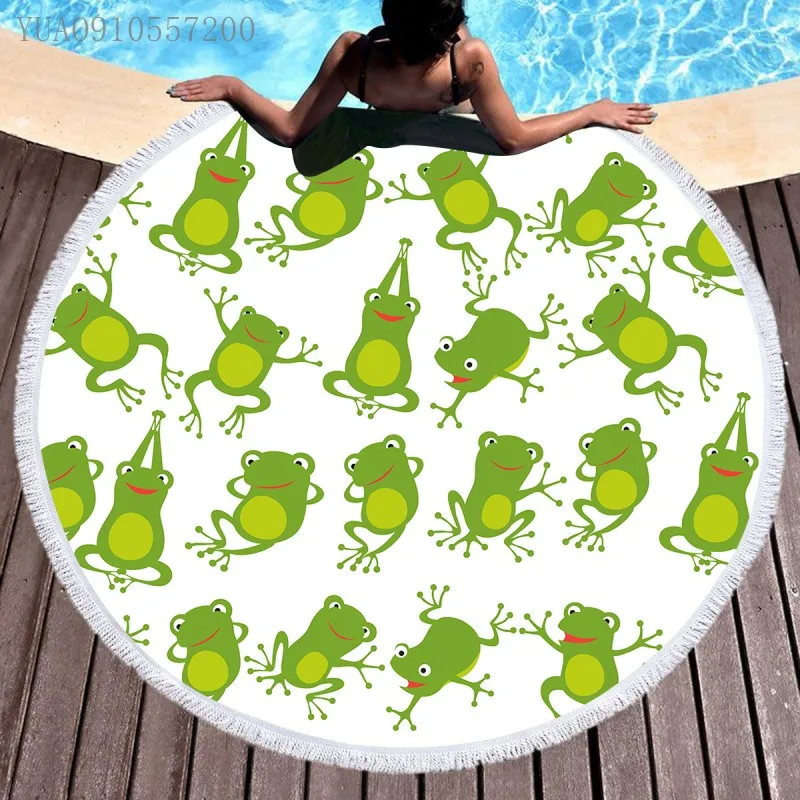 Новинка, 1 шт., мультяшная лягушка, детское круглое пляжное полотенце, шаль против солнечного света, пляжное полотенце, коврик для пикника и йоги, полотенце для рук