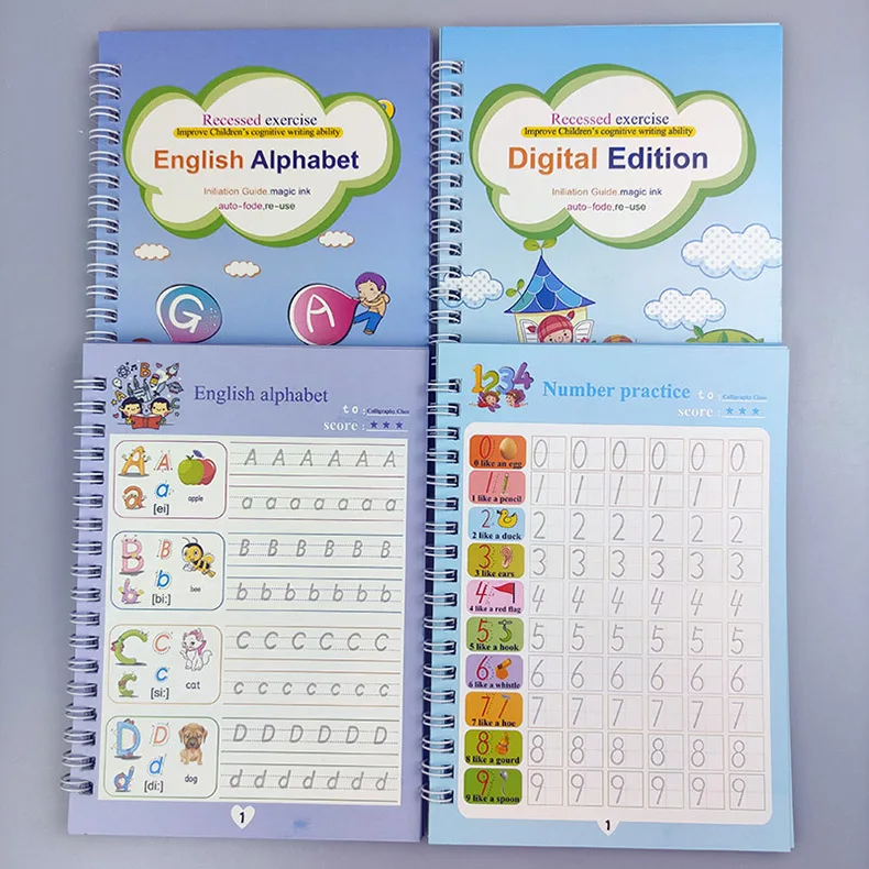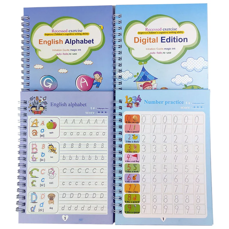 2 шт.компл. магии тетради, Многоразовые Детские каллиграфии, английский сборника упражнений, надписи, паз картина без рамки книги