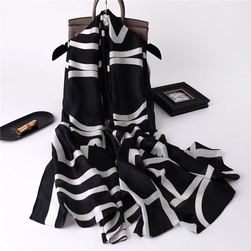 Роскошный шелковый шарф с модным принтом для женщин бандана элегантные женские повязки на голову хиджаб шаль сезон: весна-лето 180*90 см аксессуары