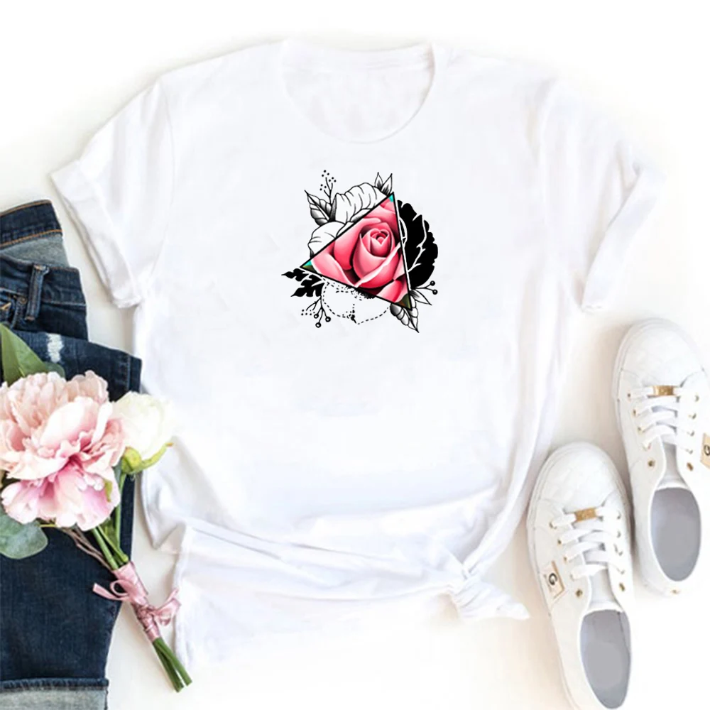 Эстетическое с цветочным принтом женские смешные футболки с О-образным вырезом, женская футболка; Топ; Милые модные Графические футболки женские свободные женские футболки Y2k Топы