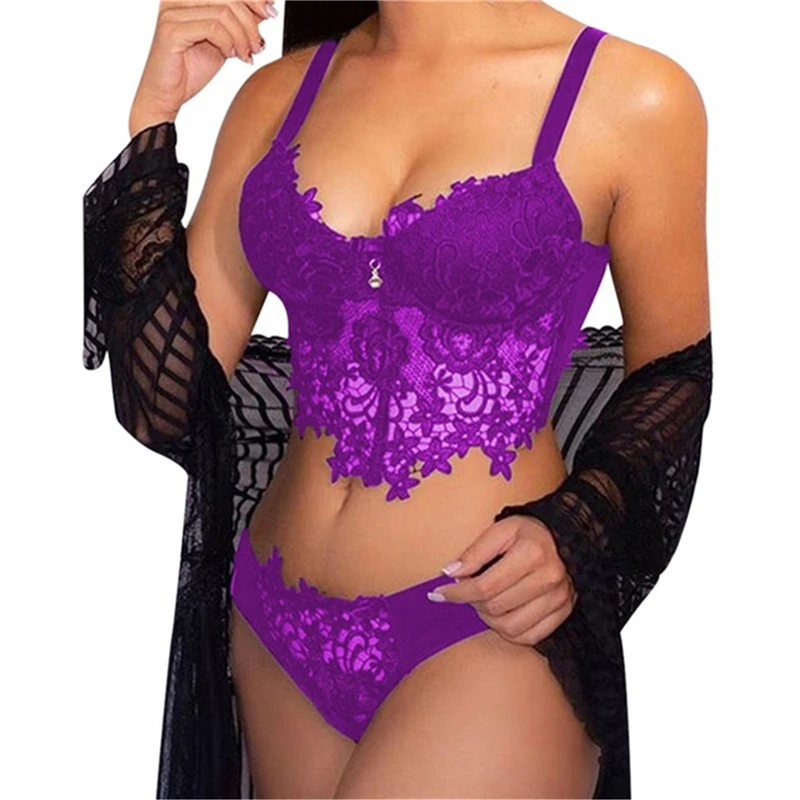 Сексуальное нижнее белье 2 шт.компл. Для женщин Прозрачная кружевна...