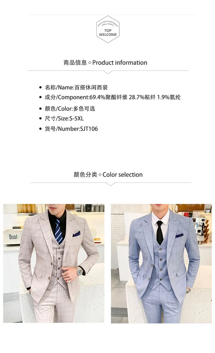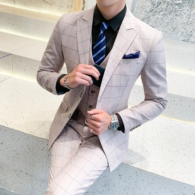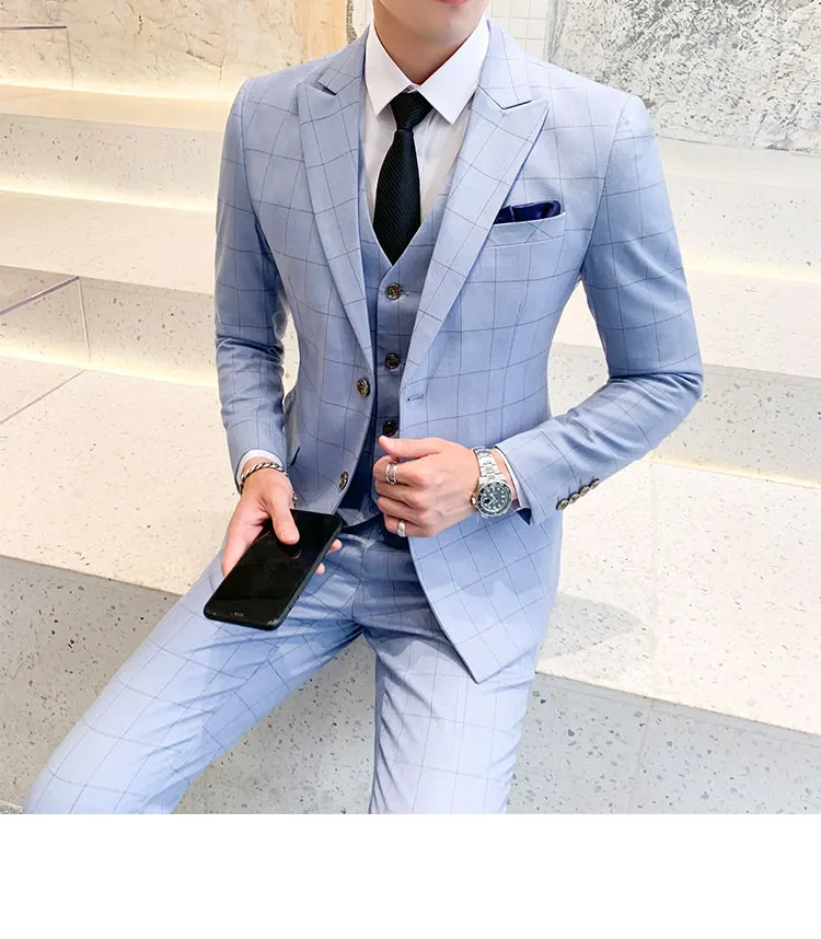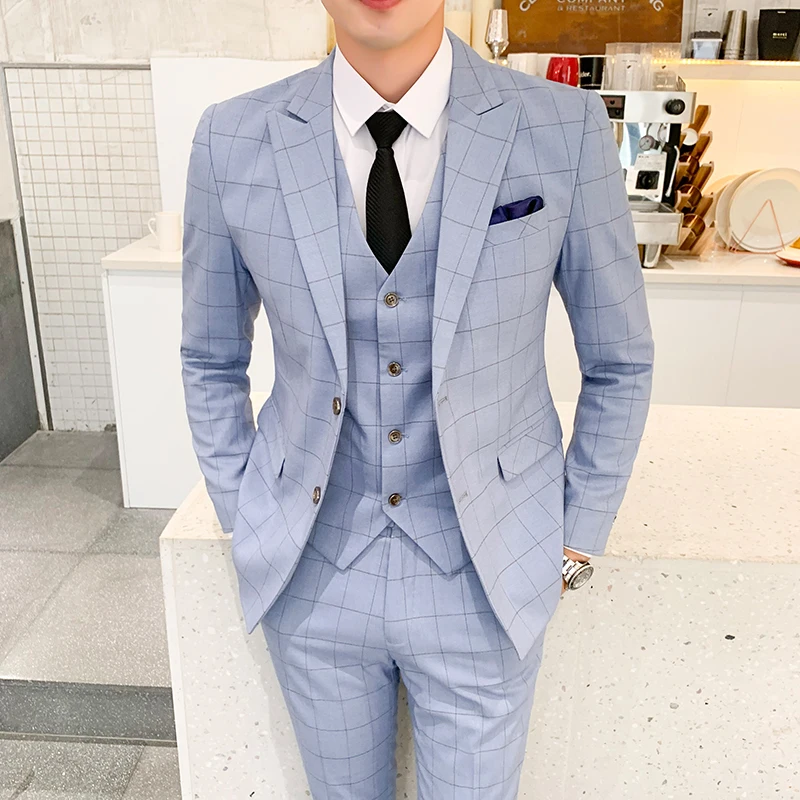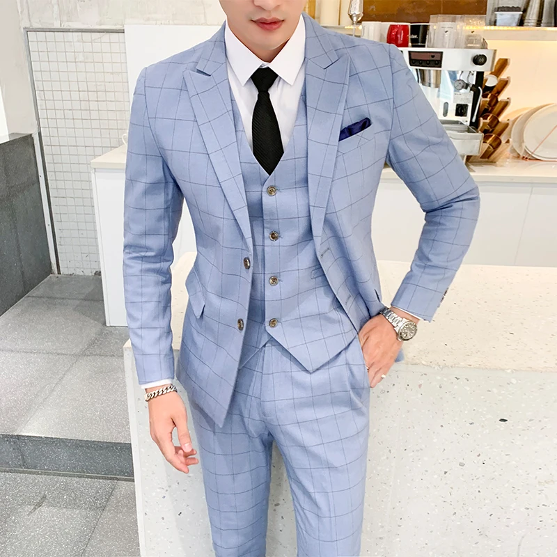Мужские комплекты из 3 предметов одежды: 2021 Весенняя мода мужской костюм синего цвета; Крутая Красивая верхняя одежда Клетчатый костюм размера плюс 5XL повседневная Slim Fit жениха костюм наборы для ухода за кожей