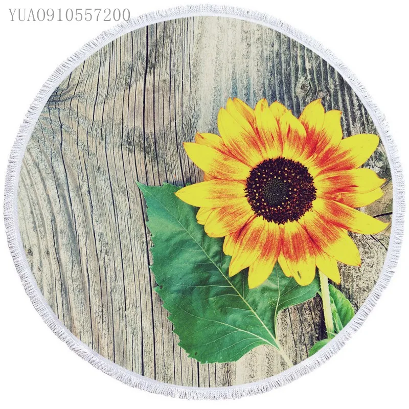 Круглое пляжное полотенце с принтом подсолнуха, летнее плотное банное полотенце для душа, круглое пляжное плавательное полотенце 150 см, коврик для йоги, закрывающее пляжное полотенце