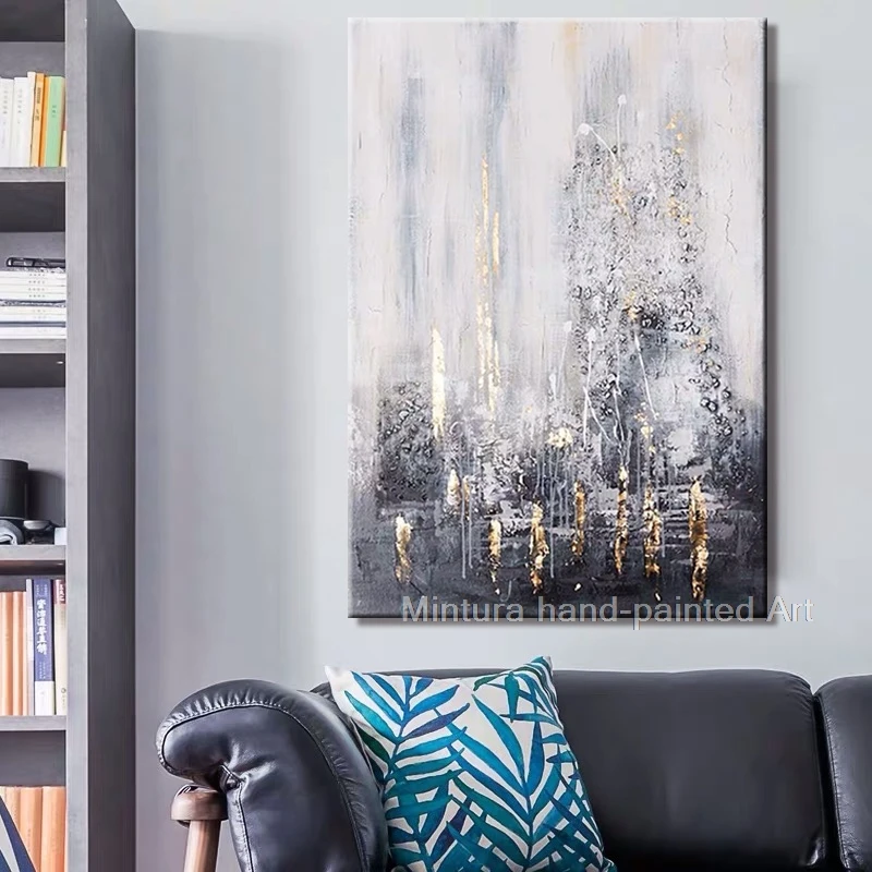 Mintura большая оригинальная ручная роспись Абстрактная текстурированная Современная Золотая картина маслом на холсте настенное искусство для гостиной домашний декор