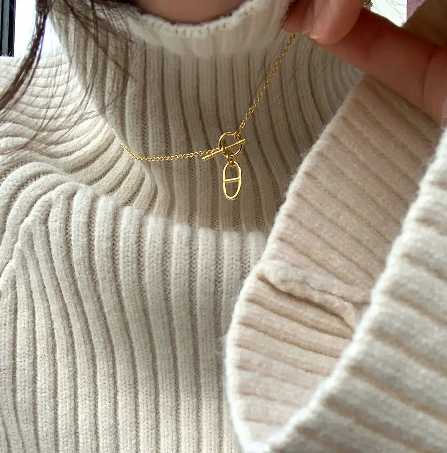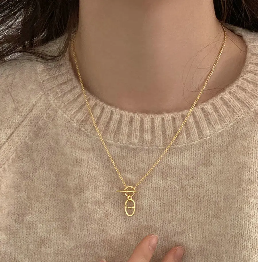 Ожерелье с подвеской из нержавеющей стали с позолотой, 18 К