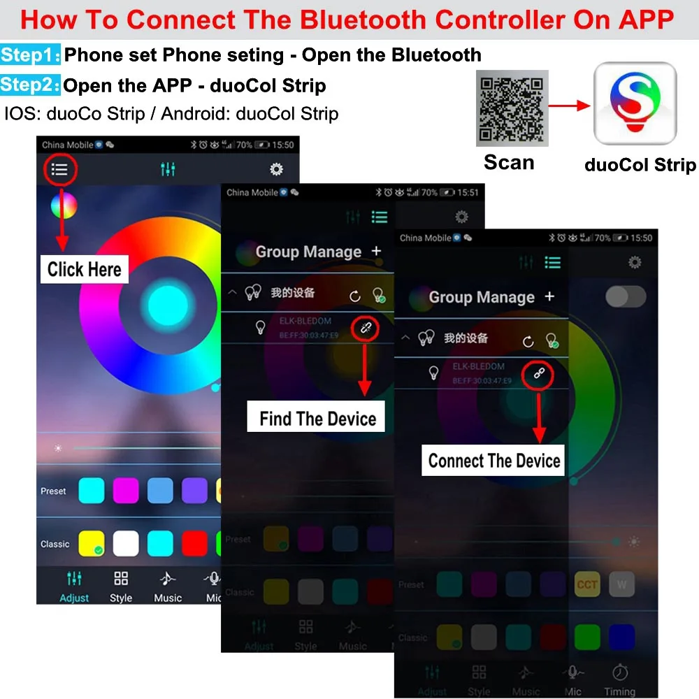 1. Подключите блок к светильник бар для того, чтобы сделать его светильник или похода по магазинам.2. Отсканируйте qr-код на контроллере и загрузите приложение.3. Включите Bluetooth/Wifi, а затем подключите его.4. После успешного подключения откройте приложение и используйте его.Мы отправим вам руководство по эксплуатации, пожалуйста, не беспокойтесь.