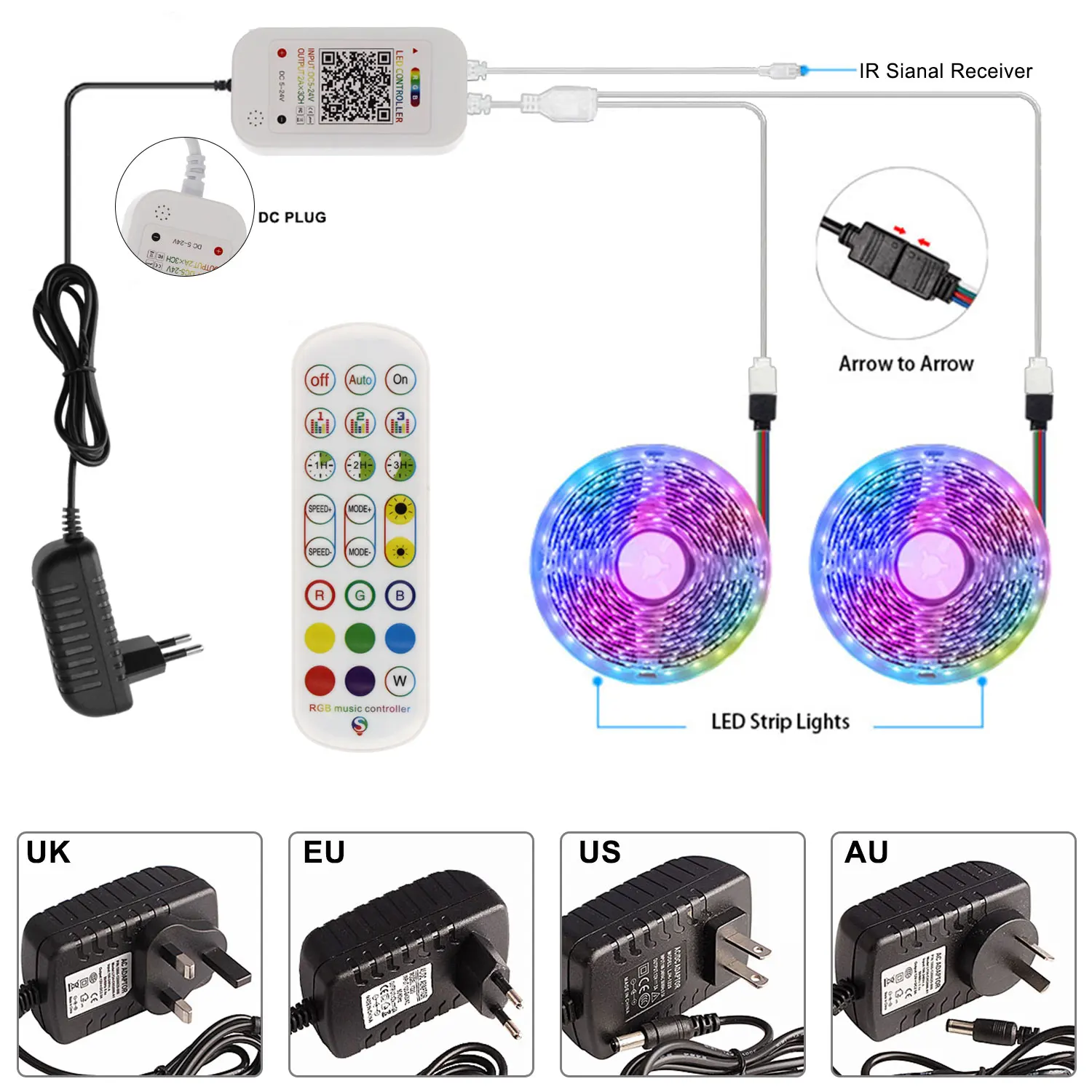 Led Light Strip Kit with 44key Remote and Power Supply