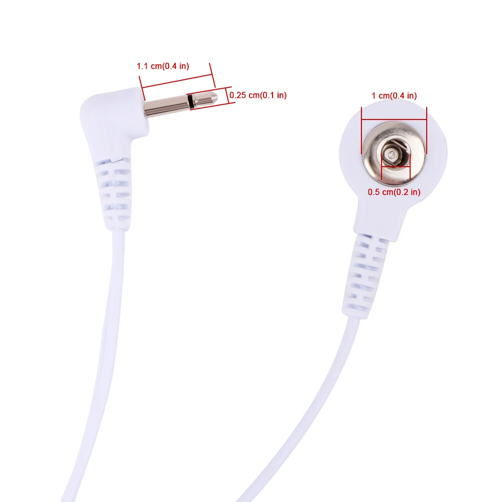 Провод электрода специально разработан для подключения электродной прокладки с терапевтической машиной или массажером TENS. Конец с 2 кнопками для электрода pad, другой для Десятки терапевтический аппарат или массажер. Длина провода электрода составляет около 120 см, что является адекватным для большинства пользователей. Подходит только для 2,5 мм jack десятков массажер или терапии машина.