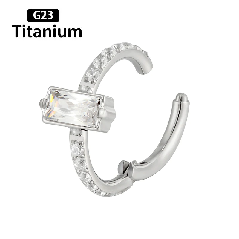 G23 Титан высокое качество удлиненный Циркон в центре камень высота сегмента кольца открытая небольшая кольца для пирсинга перегородки носа серьги для носа ювелирное изделие,септум титан