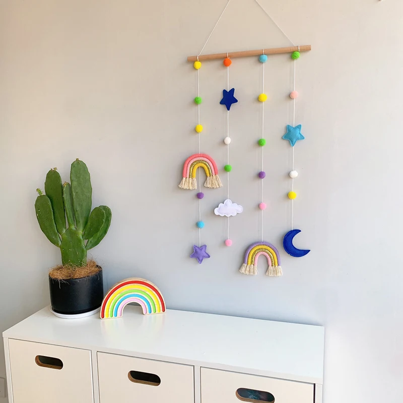 Скандинавский стиль, милый фетровый Плетеный Радужный настенный орн...