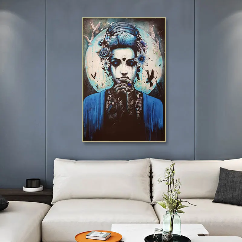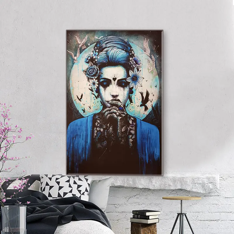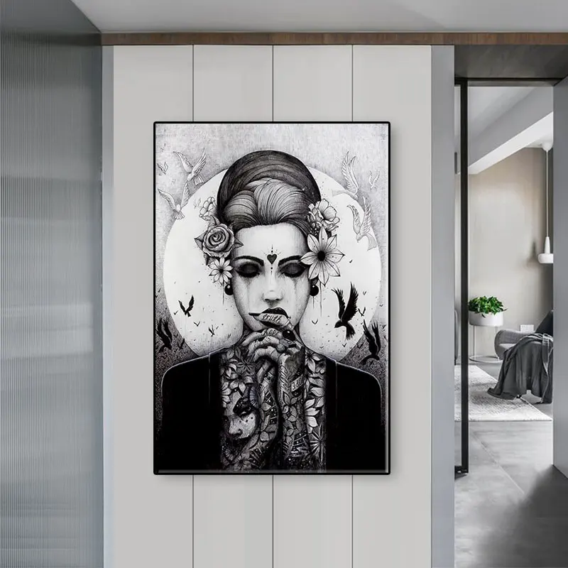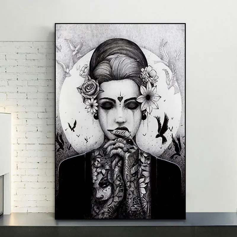 Домашний декор, настенное искусство, ужас, ВИНТАЖНЫЙ ПЛАКАТ, черно-белая Картина на холсте, тату, японские женщины, картины, украшение комнаты, принты