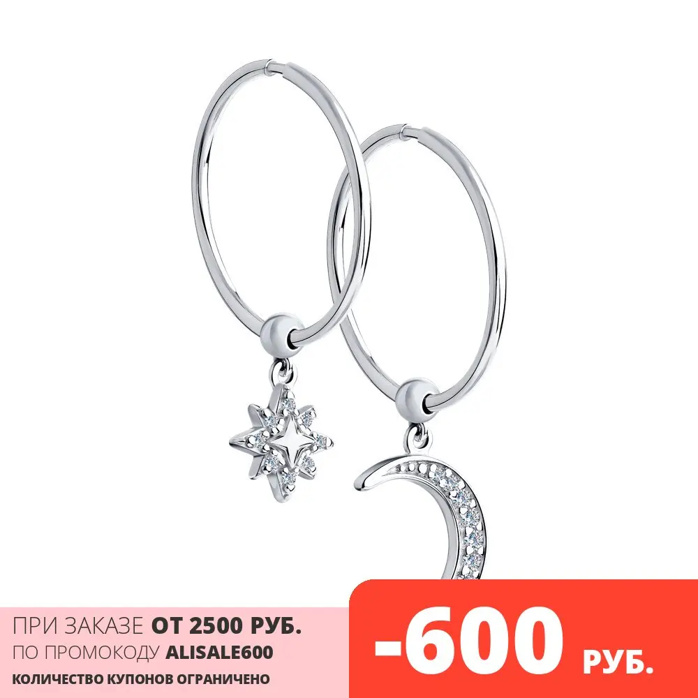 Серьги SOKOLOV из серебра с фианитами, Серебро, 925, Женские, Серьг...