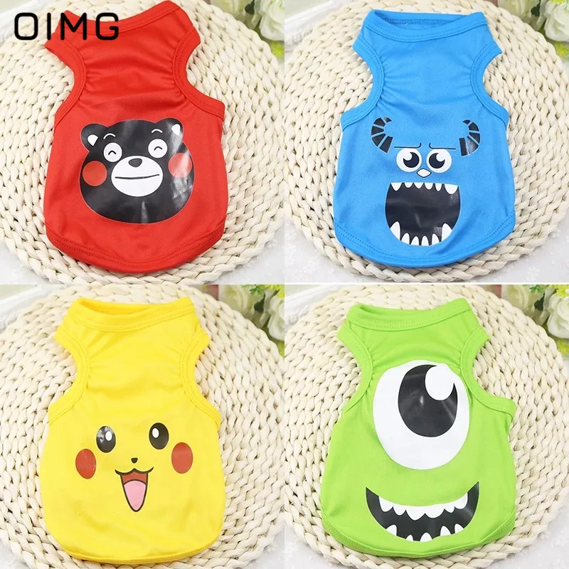 Летняя одежда OIMG для домашних животных, одежда для собак, майка с мультяшным котом и маленькими собаками, рубашки для чихуахуа, померанского щенка, безразмерная футболка для собак, костюм