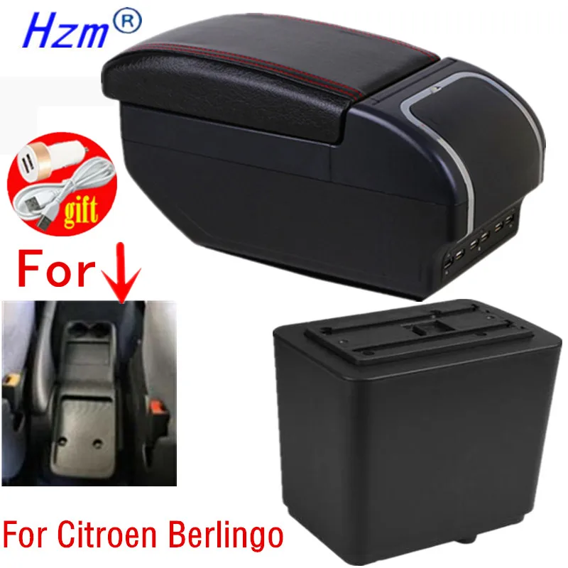 Для Citroen Berlingo подлокотники модифицированные детали для Peugeot партнер tepee ящик для хранения в подлокотнике автомобиля автомобильные аксессуары для зарядки USB светодиодный
