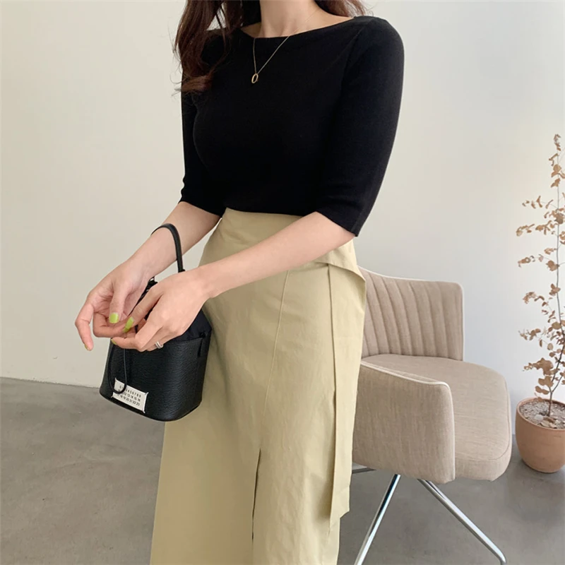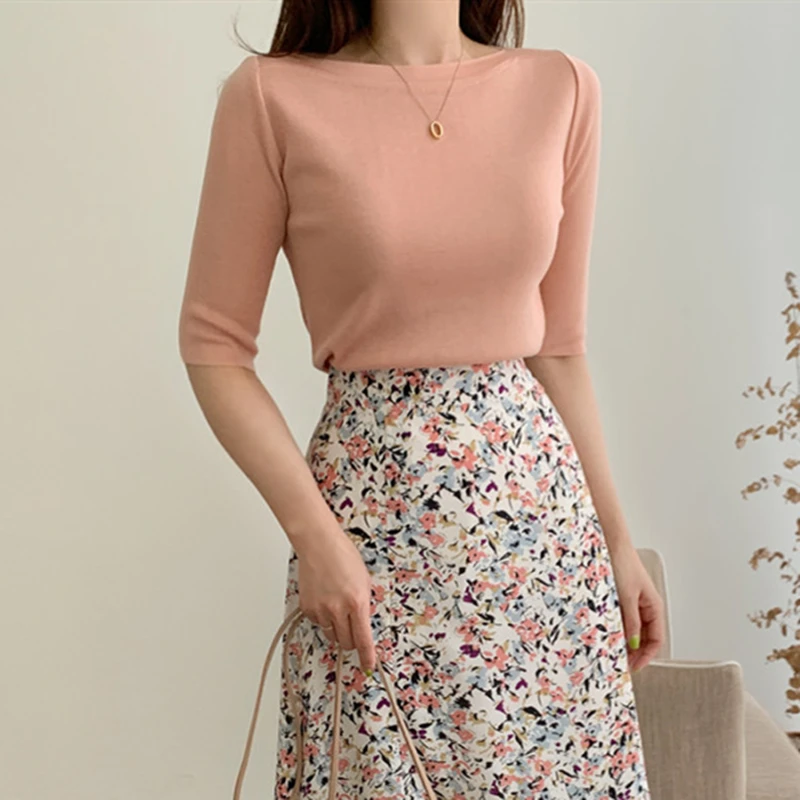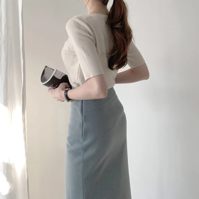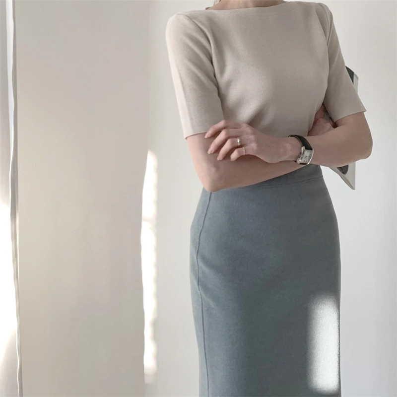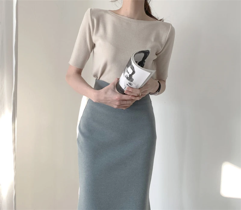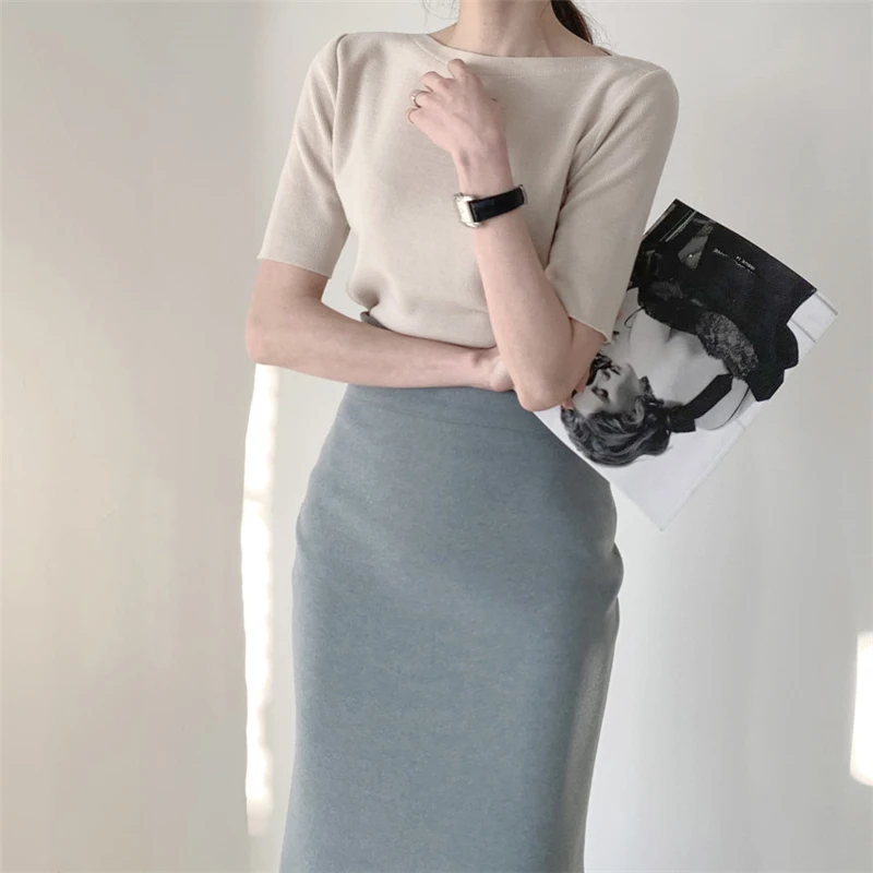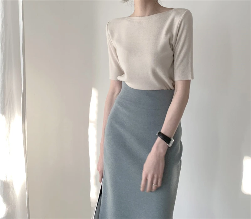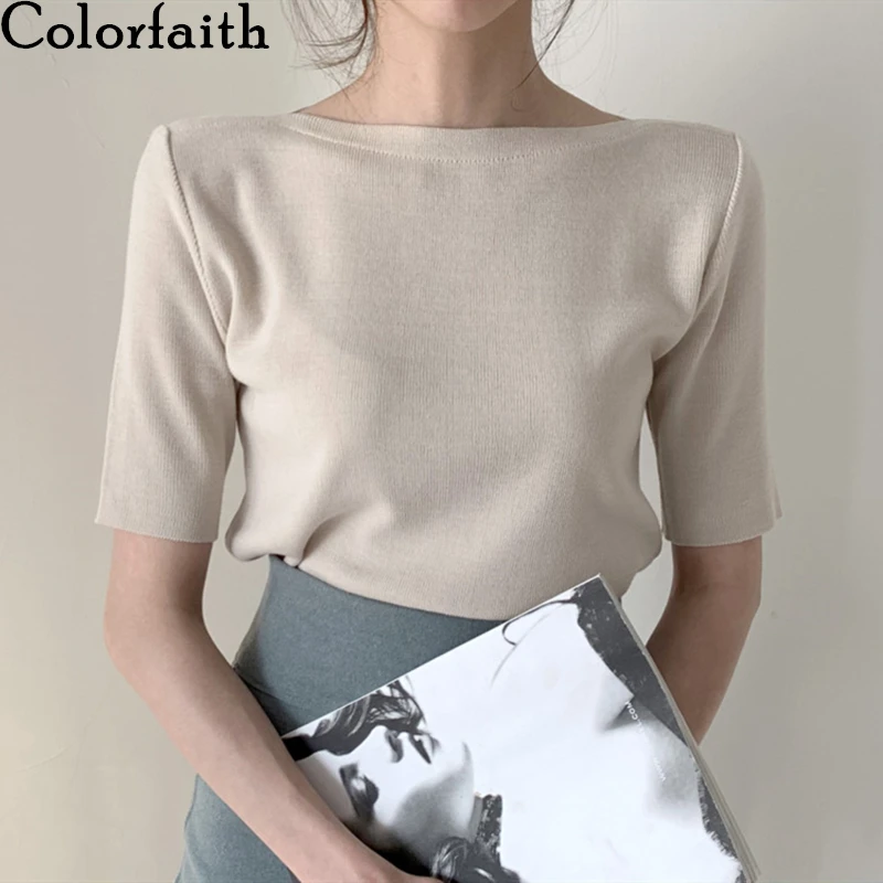 Футболка женская Базовая однотонная, трикотажная в минималистичном стиле, в Корейском стиле, Colorfaith, T7609, лето 2021