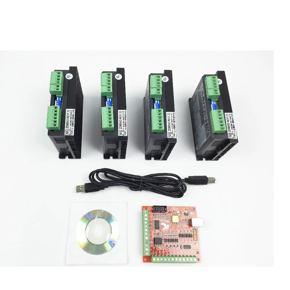 Комплект системы управления ЧПУ, 1 * Красная Плата USB MACH3 100 кГц, 4-осевой интерфейс драйвера, контроль движения + 4 2DM542