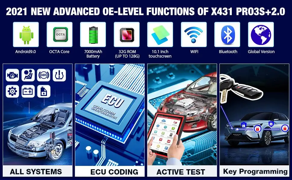 1. Как последний продукт серии LAUNCH X431, компания LAUNCH оптимизировала оборудование и программное обеспечение. LAUNCH X431 PRO3S + диагностический сканер поддерживает 31 + расширенные функции, а обновление программного обеспечения быстрее, чем старая серия Launch X431, включая направляющие функции, онлайн-кодирование, сервис IMMO и т. д.2. Размер экрана запуска X431 PRO3S + (10,1 дюйма) практически больше во всех диагностический инструмент сканирования и более передовых технических характеристик. Один экран может отображать 20 потоков данных (графический и текстовый), которые легко перемещаться.3. LAUNCH X431 PRO3S + автоматический инструмент сканирования основан на Andoird 9,0, с 8-ядерным процессором 1, 8 ГГц, 3 Гб оперативной памяти, 32 ГБ оперативной памяти (поддержка расширения до 128 ГБ). Это может быть быстрая скорость передачи данных, в два раза выше диагностической скорости.4. LAUNCH X431 PRO3S + диагностический сканер поддерживает сверхмощный модуль (необходимо приобретать отдельно), бесплатные обновления в течение двух лет и пятилетняя гарантия.5. LAUNCH X431 PRO3S + Bi-direction сканер поддерживает ADAS (необходимо приобрести оборудование для калибровки LAUNCH ADAS и активировать программное обеспечение ADAS), эндоскоп, Противокражные ключи, обнаружение давления в шинах и другие расширения.6. LAUNCH X431 PRO3S + Bi-direction сканер поддерживает больше моделей и послепродажное обслуживание гарантировано более профессиональным персоналом, не пропустите!7. LAUNCH X431 PRO3S + был выпущен в 2021 году, применяя новые технологии.