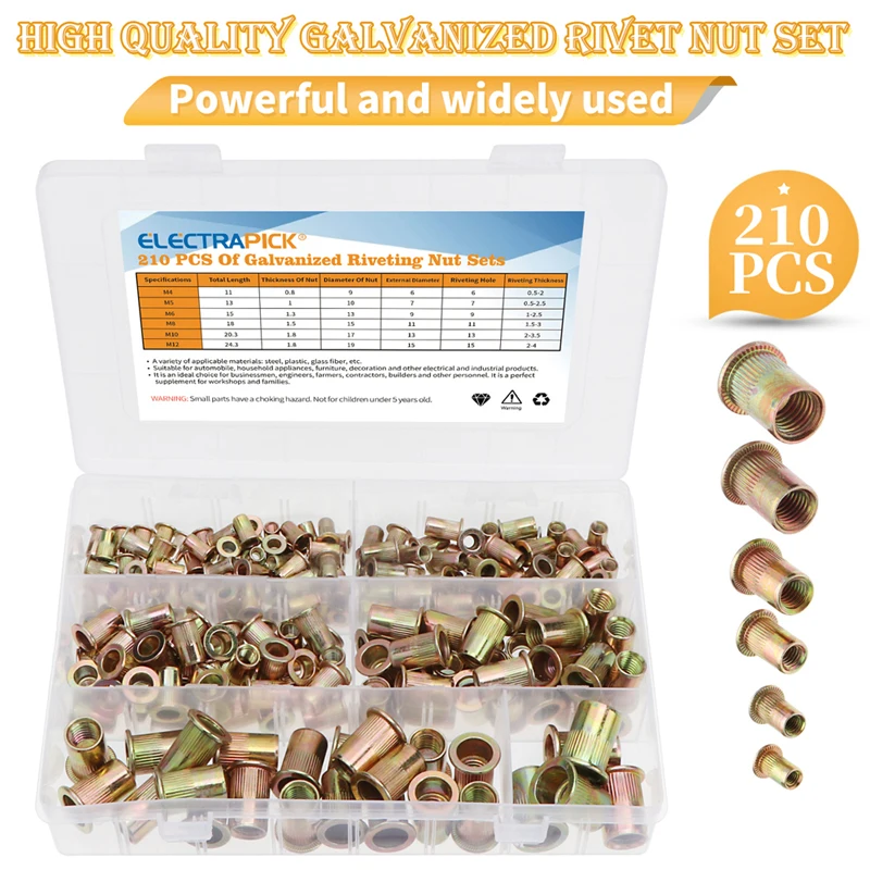210 шт. M3 M4 M5 M6 M8 M10 M12 заклепочные гайки комплект оцинкован...
